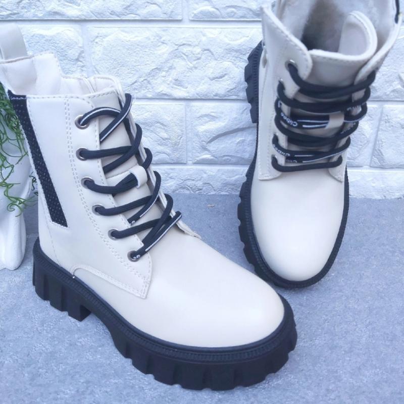 Clibee,верх високоякісна еко-шкіра,молочного кольору, товста підошва не буде промерзати, щильне хутро (60% натуральна овчина) регулюються шнурками та замочком, гарно в школу під все. 32р устілка 20,5см 33р устілка 21см 34р устілка 21,7см 35р устілка 22,3см 36р устілка 23см 37р устілка 23,7см