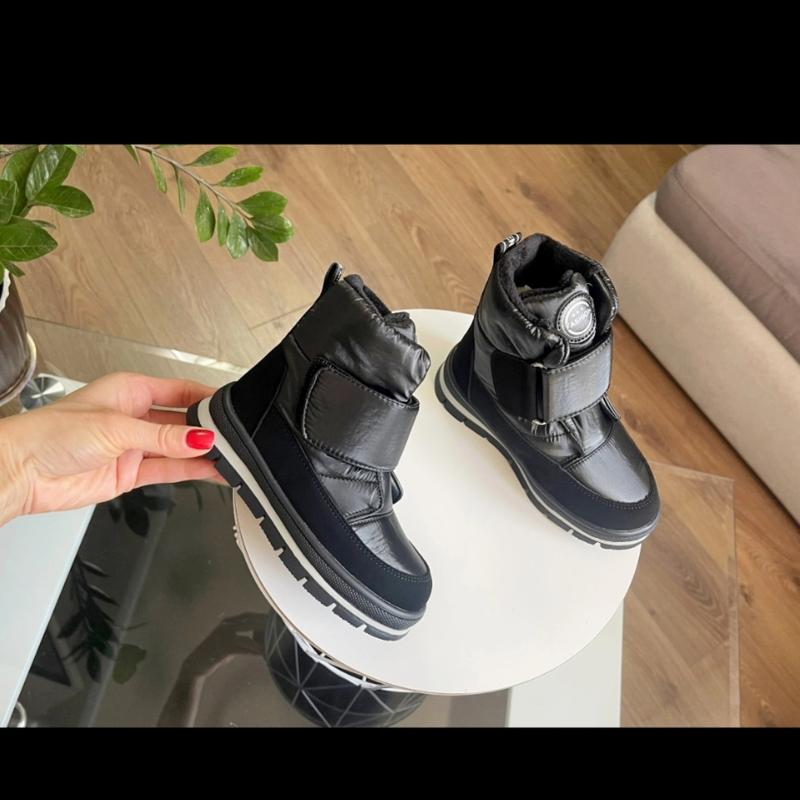 ТМ Кimboo Верх екошкіра та водонепроникна плащівка. Всередині густе, тепле хутро( натуральна овчина 60%). Фіксація на широку, міцну липучку. Максимально легкі, зручні та якісні. 27 розмір 17,5 см 28 розмір 18 см 29 розмір 18,7 см 30 розмір 19,5 см ЕС