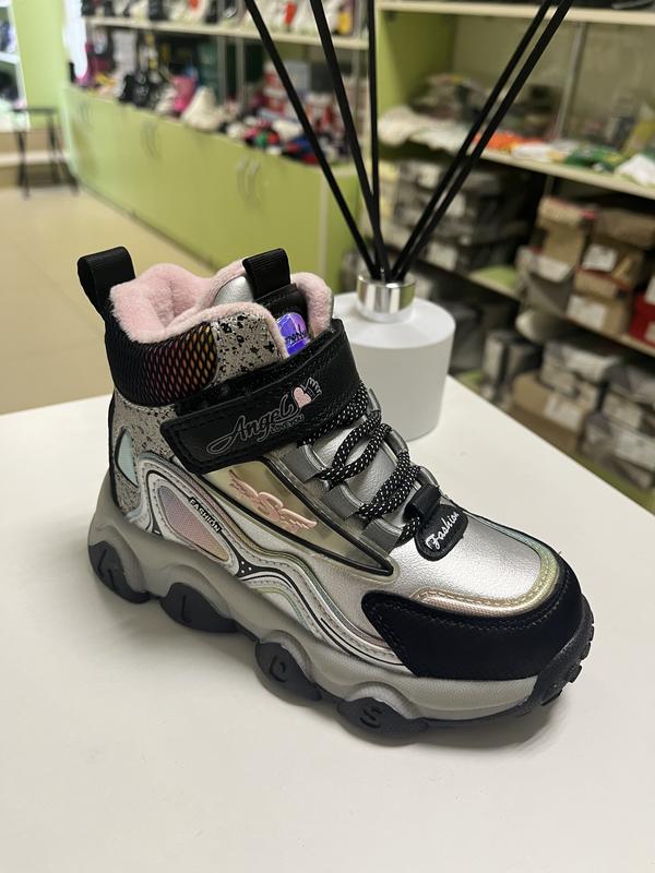 Кросівки зимові на хутрі, виготовлені з екошкіри, мають зручну застібку, захищений носок від подряпин, підвищену підошву.