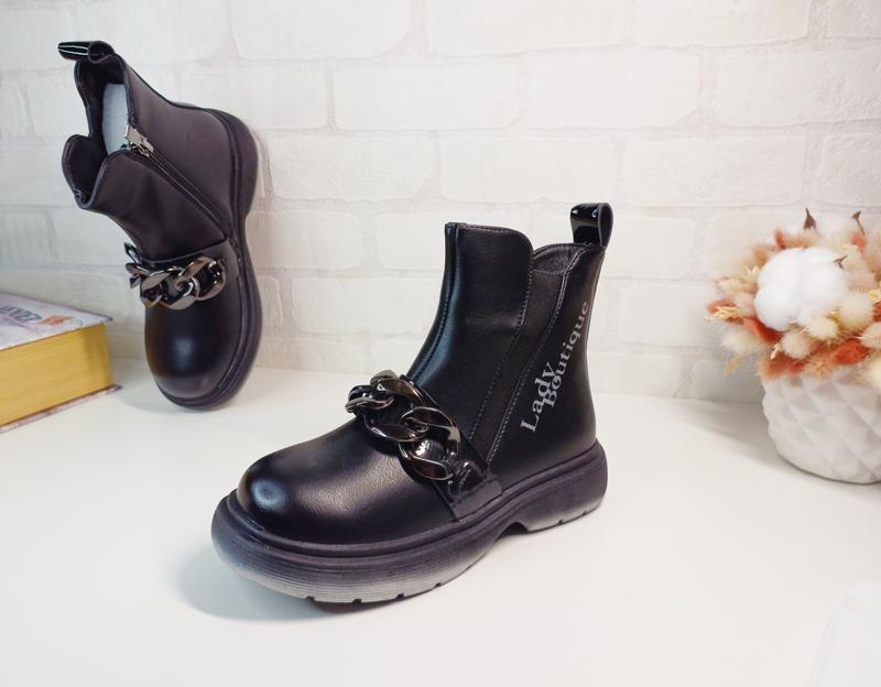 Ботинки отличного качества. Точно такие как на фото. Верх кож зам. Есть резиночке сбоку для комфорта. Застёжка на молнию сбоку. Ботинки на флисе, на холодную осень или теплую ( евро)зиму. Украшены декоративной цепью, так же по периметру подошвы есть серебристое напыление. Смотрятся просто супер! Стелька кожа натуральная с супинатором. Когда похолодает можно подложить теплую стельку, что увеличит время носки. Обратите внимание, что стелька не съёмная, замеры сделаны по внутреннему пространству. Потому точность замеров до 3 мм. 32р -20,5 см 33р -21 см 34р -22 см 35р -22,5 см 36р -23 см 37р -23,5см продан -Оплата на карту, Накладки та безпечної оплати немає. -Перед оформленням замовлення. уточніть наявність, товар швидко розбирають., не завжди встигаю прописані розміри зазначення. -Укрпочта или Новая почта - Обмінів і повернень немає