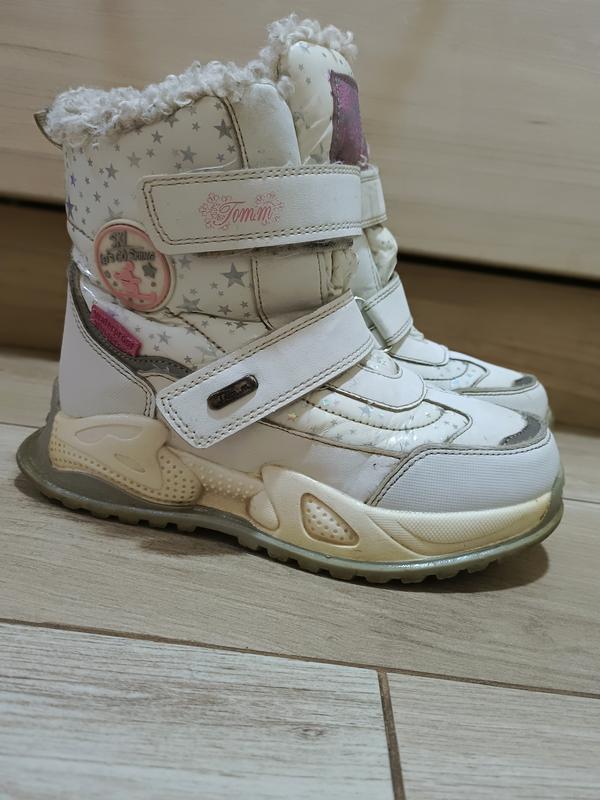 Дуже теплі на натуральній овчині, водонепроникні. Розмір 32, по стельці 20,5 см. При потребі стельку можна замінити