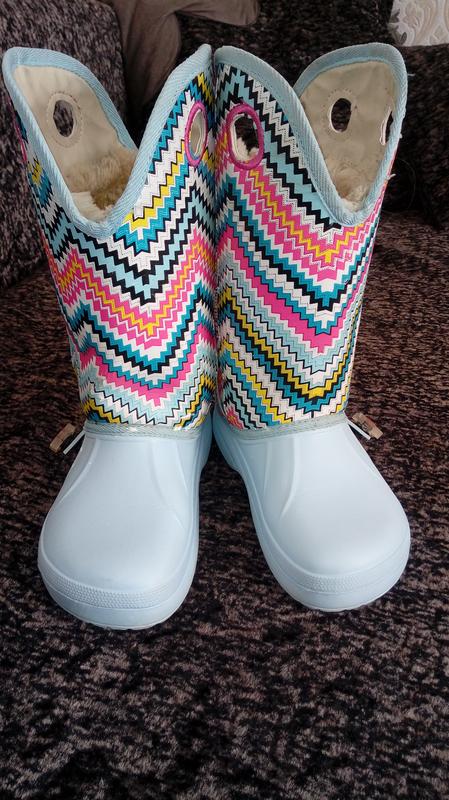 Чоботи Ugly, калоша крокслайт, утеплені штучним хутром, не поступаються зимовим кроксам. Носили й ті, й інші, отже, було з чим порівнювати. Американський розмір 3, європейський 34