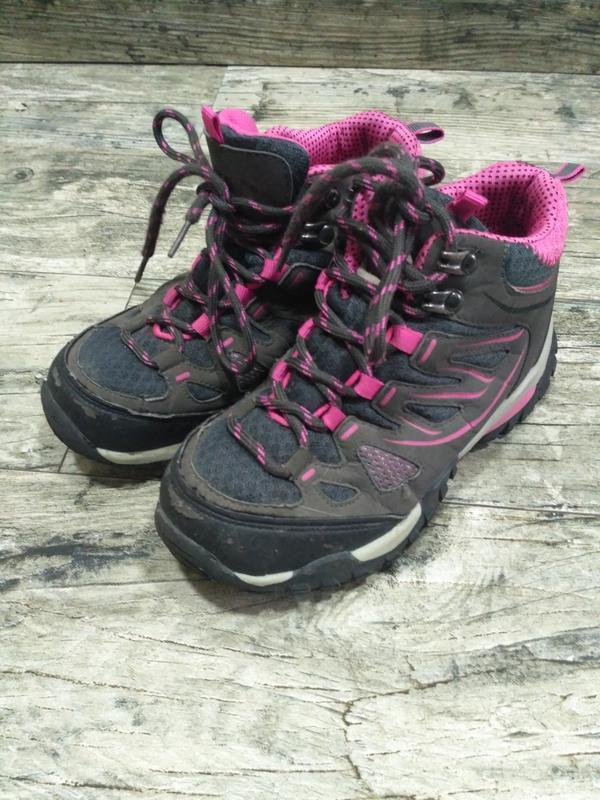 Размер по бирке 33. Стєлька 21. Состав кожа+водонепроницаемая мембрана. Состояние хорошее. Трещин порезов нет подошва цела. Есть небольшая потертость на носках,но в носке не так заметно. ( фото 2) Отправка после оплати. Новая Пошта Укр Пошта.