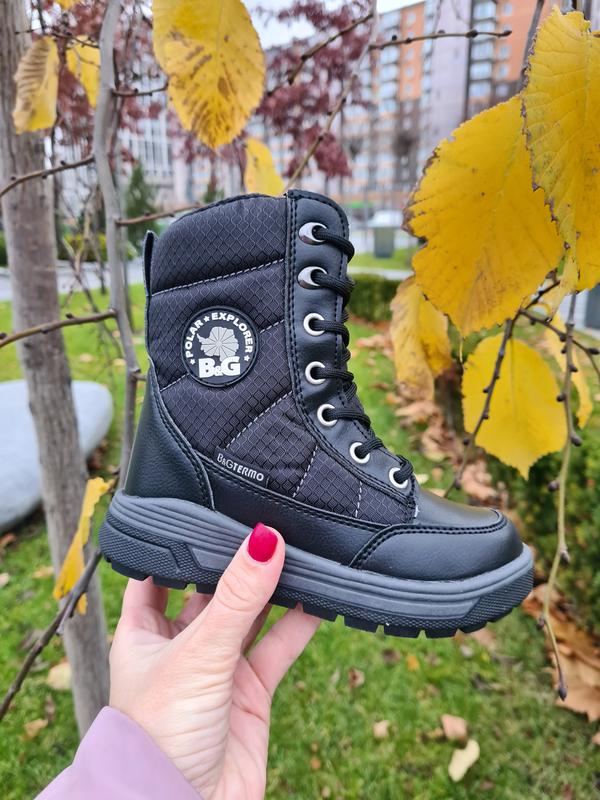 Термочеревики B&G-Termo Артикул: 191-1225J підходить на будь-який підіймання, реулюється і налаштовується на нозі шнурівкою Розміри устілка з загином, заміри до загинання: 27р. по устілці 17,0 см 28р. по устілці 17,5 см Матеріал внутрішній: вовна натуральна, взуттєва бака та фліс + термоустілка (зберігає тепло за -30 °C) Матеріал зовнішній: водовідштовхувальний текстиль за технологією Waterstop + зносостійка штучна шкіра (PU). Що ж таке мембрана BG-QweenTEX? Це: вологонепроникність + термоефект + температурний режим від +10 °C до -30 °C. Термоустілка має три шари: 1.Антіалергенний матеріал, що містить натуральну шерсть, підтримує тепло та створює комфорт під час ходьби. 2. Спеціальний фольгований внутрішній шар перешкоджає охолодженню, відбиває тепло ступні всередину. 3. Спеціальний перфорований віскозний шар поглинає вологу та дає стопі вільно дихати. Підошва в термоботинках B&G-Termo: забезпечує чудове зчеплення з будь-якими видами поверхні + - має високу стійкість до деформацій, низьких температур і поганої погоди, а також гарантує водонепроникність