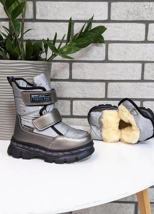 Стильна зимова новинка для дівчаток від фірми Том. М Верх якісна еко шкіра та водонепроникна плащівка, яка не пропускає вологу та холод. Всередині густе, тепле хутро ( натуральна овчина 60%). Фіксація на 2 липучки. Легкі, зручні та практичні. Розміри: 28р-18,2см 29р-18,8см 31р-20,2см 33р-21,5см 35р-22,9см арт81