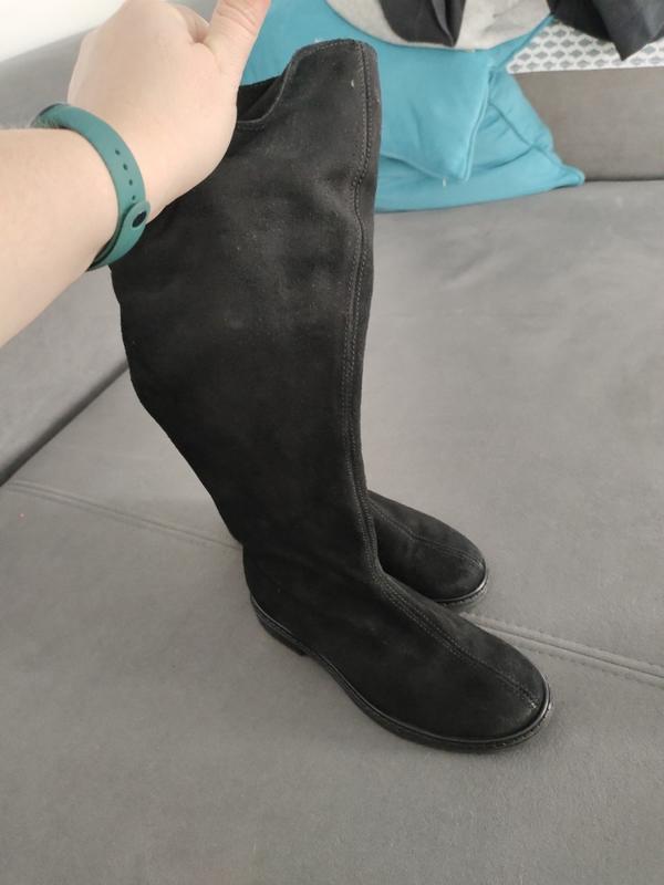 Осінні сапожечки до коліна.Дуже гарно дивляться на ніжці.Одягали 2 рази(фотосесія,д/н.)В ідеальному стані(на фото видно).Натуральна замша,в середині шкіра.Стелька 19.5см.Можлива знижка.