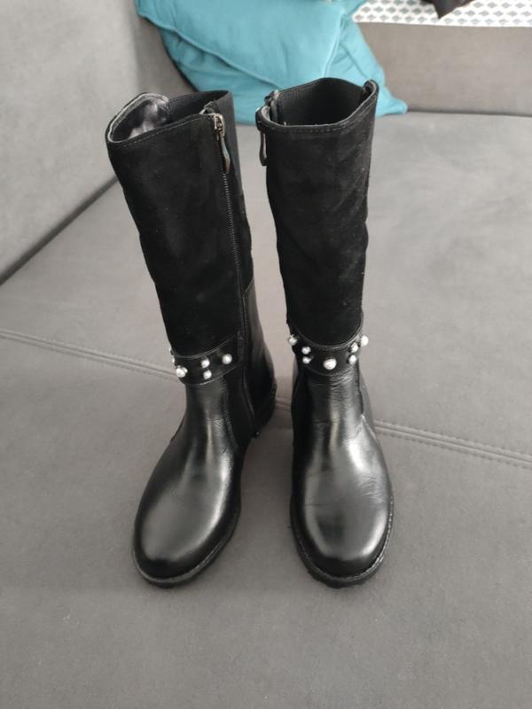 Нові,не підійшов розмір.стелька 21см.В середині дуже теплі,видно на фото.Зовні шкіряні,замшеві зверху,регулюються резинкою.