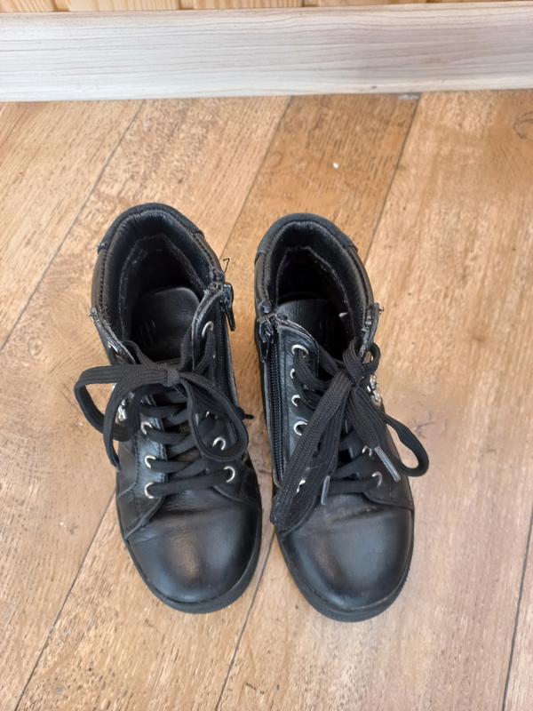 Шкіряні ботінки в гарному стані. 28 розміру. Є і шнурки і змійка. Трошки збиті носочки, але плюс шкіряного взуття що можна покремить і не буде видно.))) На фото не кремила.