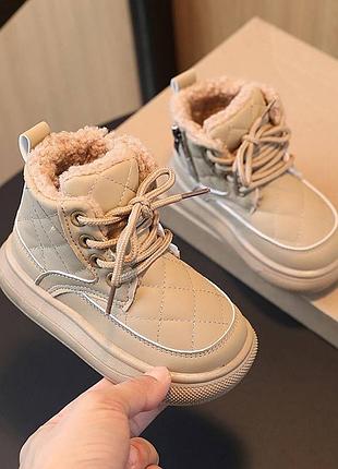 Заміри: 21 - устілка 13,6 см 22 - устілка 14,1 см 26 - устілка 15,6 см 27 - устілка 16 см 29 - устілка 17 , 5см Матеріал: еко шкіра в середині утеплені штучним хутром Устілка перфорована Eva утеплена Підошва: м'яка гума, гнеться
