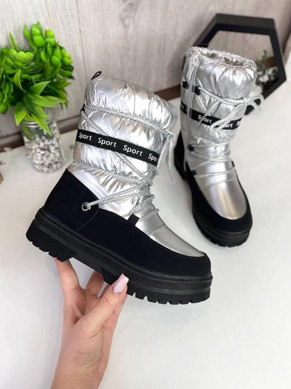 Шикарні дутики від Tom.m.💎Сріблястого кольору. Спереду на шнурівці, у стилі луноходів. Усередині утеплені овчиною (60% натур.). Збоку блискавка, є захист від протікання вологи. Легенькі. Стильно виглядають на ніжці. ❤ 33р. - 21,8см 34р. - 22,3см 35р. - 23,3см 36р. - 23,8см 37р. - 24,4см 38р. - 25,2см
