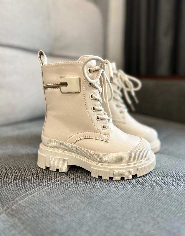 Ціна 1200 грн Зимова новинка для дівчаток від фірми Paliament Чудова якість та стильний дизайн 🔥 ◾️Ззовні еко шкіра, носочок додатково захищений від збивання ◾️Всередині густе хутро (60% натуральна овчина) ◾️На шнурівці. Збоку є замочок. Розміри: 29 р-19,0 см