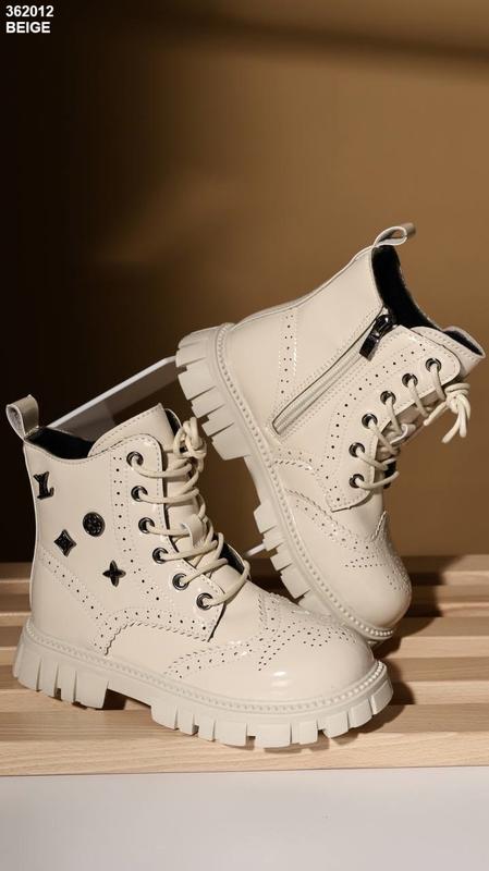 Мега стильні зимові черевики для дівчаток Якість на висоті. Верх якісний еко лак. Всередині густе тепле хутро Фіксація шнурівка Збоку є замочок. Легенькі та зручні. Розміри: 36-21.5 см 37-22 см Модель маломірить