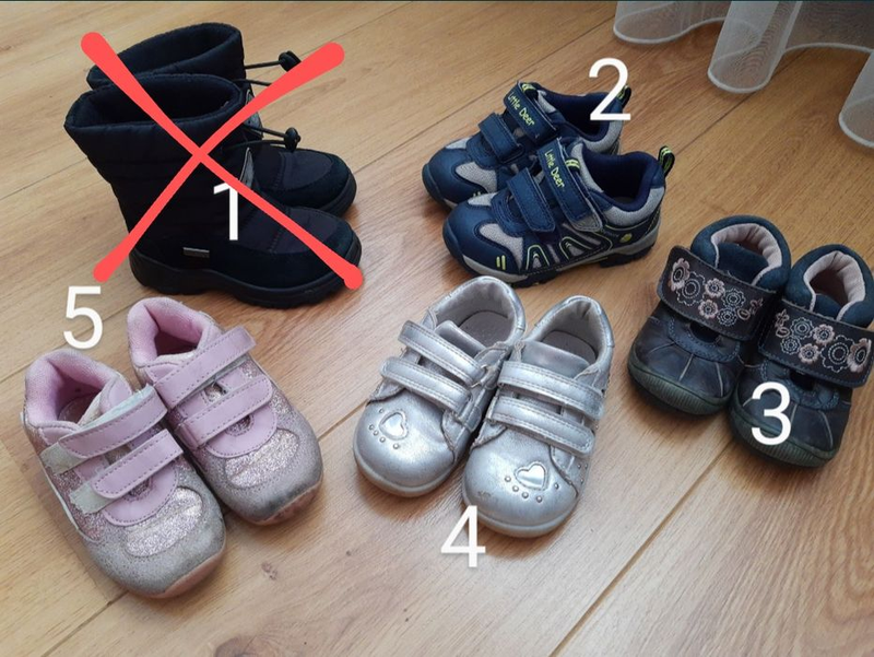 1. Зимние сапожки на овчине внутри, размер 25. Цена 200 грн. 2. Кросовки размер 25. Цена 120 грн. 3. Ботинки кожаные на липучке, размер 23. Цена 100 грн. 4. Ботиночки серебристые, размер 23. Цена 100 грн 5. Ботинки розовые , размер 23. Цена 100 грн. Дополнительные фото и замеры могу выслать.