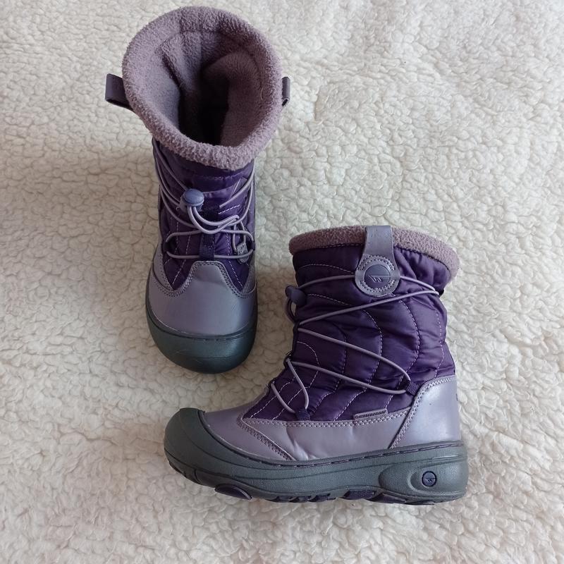 Термо сапоги Hi-Tec Waterproof, легкі, не промокають. Розмір UK-2, EU-34, по стельці 21см (зйомна, заміри точні). Висота холяви 17см, окружність 32см. Стан гарний, є потертості, дивіться останнє фото, але при використані не помітно, все ціле.
