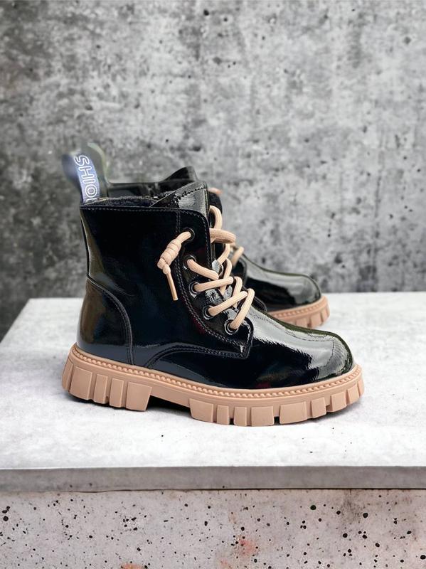 Улюблена оновлена модель чобітків😍 Якісна лакова екошкіра, шнурівка та блискавка Дизайн є для кожної, бо ж запали у саме сердечко♥️ Розмірна сітка 26-17см-2шт 27-17,5см-1шт 30-19см -1шт Ціна 1000 грн