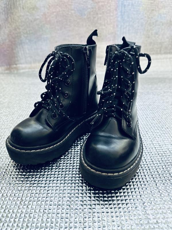 Черные детские ботинки H&M. Зима/демисезон. Размер 26 На замке и шнуровке.