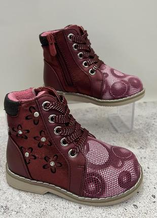 Черевики демісезонні 22 розмір- устілка 14 см Матеріал зовні- екошкіра Всередині- фліс, устілка з супінатором Фіксація- шнурки, бокова блискавка