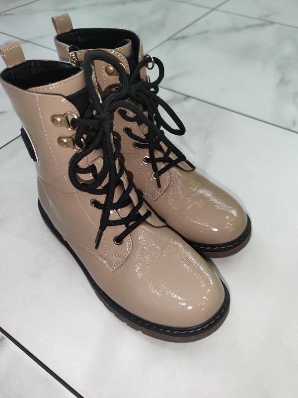 По всем вопросам обращайтесь в ЛС. Женские, подростковые стильные лаковые ботинки в состоянии новых. Без дефектов и нюансов. Без царапин, лак как новый. Были одеты один раз. Ребенок уехал из страны, не успев поносить. 36 размер полномерный (по стельке - 23,5см). Цвет бежевый, лаковый. Лёгкие, практичные, прошитые демисезонные ботинки на весну/очень. Спереди на регулирующих завязках шнуровках. Поэтому подойдут на любую ножку, даже с высоким подъемом. Сбоку для облегчения одевания/снятия есть молния. Очень стильно смотрятся на ножке. Подойдут как под юбку, так и под джинсы. Прошитые, не текут, подойдут на дождливую погоду. При необходимости скину больше фото. Возможна пересылка на примерку и возврат. Пересылаю по предоплате любой почтой или безопасной оплатой Шафа. Отправка в день заказа.
