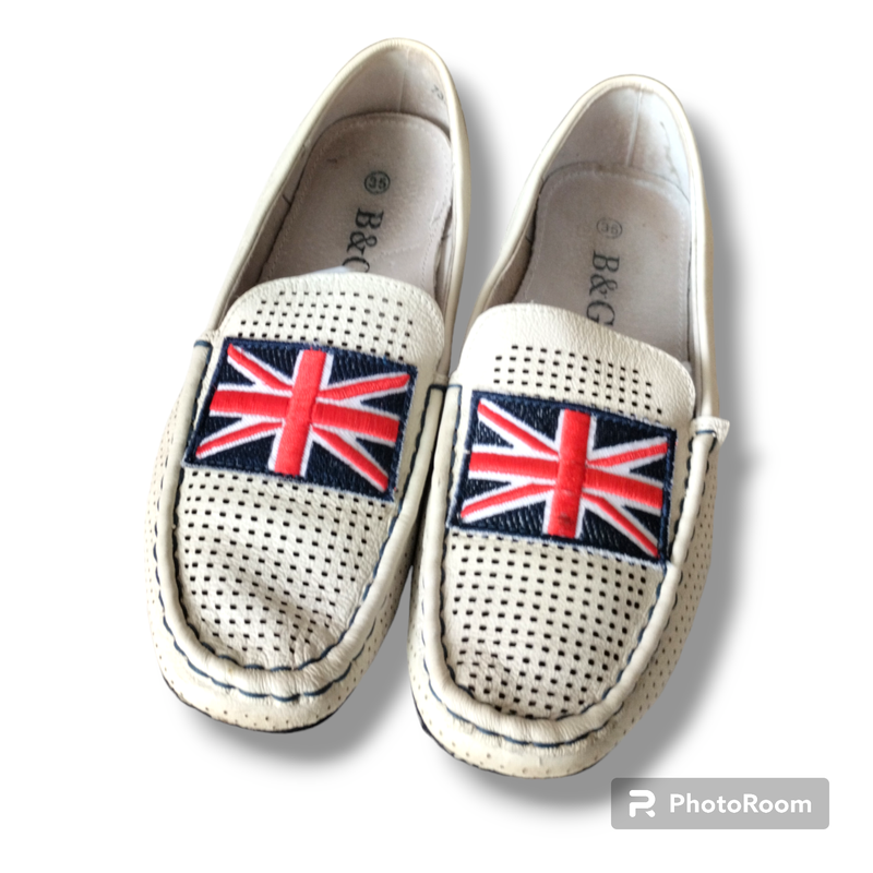 Якісні шкіряні черевики лофери з натуральної шкіри! Шкіра м'яка , має перфорацію , що дозволяє взуттю провітрюватися і ніжкам не жарко! Устілка шкіряна , анатомічна! Довжина 22 см. Колір білий молочний. Підійдуть для середньої,вузької ніжки. Стан чудовий, близько до нового! Ніжка виросла швидко і тому носили мало!
