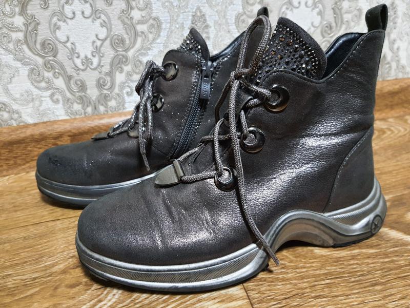 Демисезонные ботинки. Длина стельки - 21.5см. На правом ботинке немного сбит носок (последнее фото).