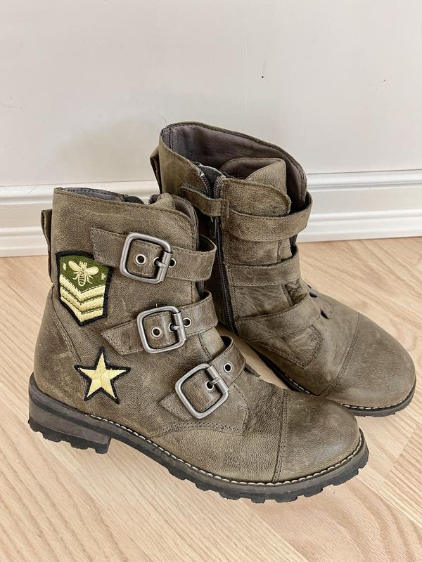 Новые крутые высокие ботинки от немецкого бренда Braqeez. Натуральная кожа антистресс. Размер 36, длина по стельке 23 см, ширина подошвы 9 см, высота битинка 17 см