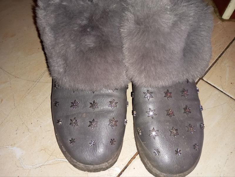 Черевики утеплені, р. 36, б/у, по устілці 24 см, стан нових, вад немає, хутро ненатуральне, колір сірий, на високий підйом, гумка, цена 150 грн.