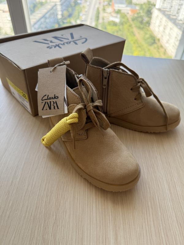 Шкіряні черевики нові, колаборація Zara&Clarks, унісекс: підійдуть як хлопчику, так і дівчинці. Шнурки додаткові в комплекті ( жовті). Заміри стельки на фото