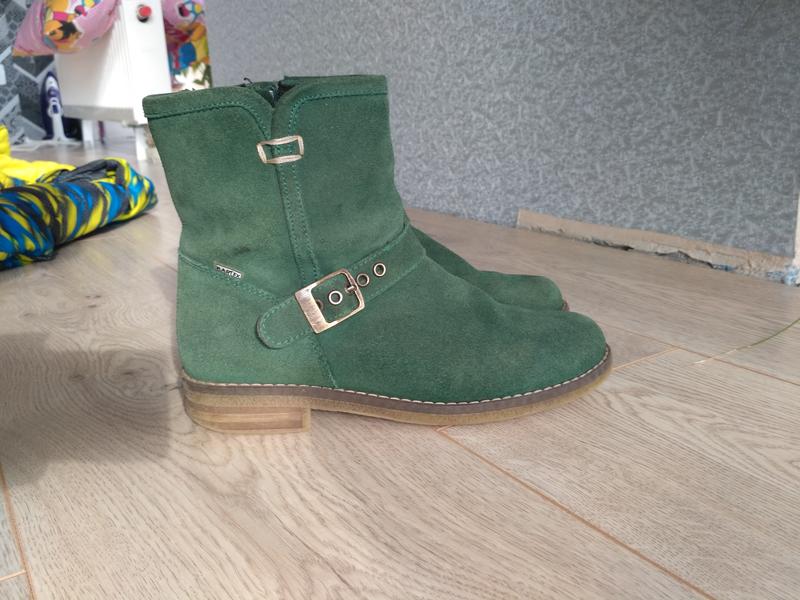 Відмінні зручні і теплі черевики на демисезон. Замш не затертий до дірок, вовняна повстяна підкладка та устілка. Дуже теплі та зручні. Не протікають. Були у догляді Salamander. Є нюанс - пошкоджений манжет лівого черевика ззаду. На носку - не впливає. Замки робітники. Підбори - поліуретан м'який помірно стесані, потребують ремонту.
