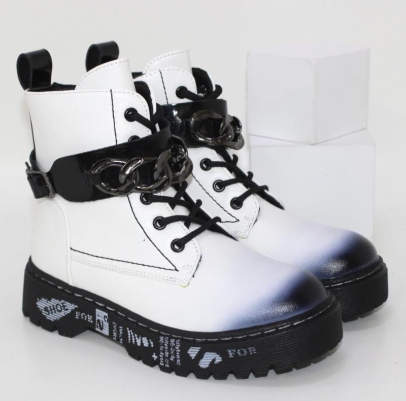 Модні підліткові черевики для дівчаток з ланцюжком Код: 113633 (C30519-7) Бренд: Q SHOES Матеріал верху штучна шкіра Матеріал підкладки текстиль Матеріал устілки натуральна шкіра Висота каблука 3 см Кольори в наявності білий Сезонність осінь, весна Країна виробник Китай Заміри по устілці 32-20.5см 33-21.0см 34-21.5см 35-22.0см 36-22.5см 37-23.0см