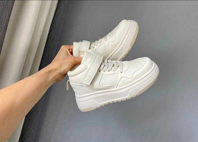 Стильні хайтопи для дівчаток Ззовні якісна еко-шкіра Всередині плюш Шнурівка -резинка Фіксація липучкою колір молочний лена 33 розмір 21 см 34 розмір 21.7 см 35 розмір 22.3 см (2 шт 36 розмір 23 см (2 шт 37 розмір 23.8 см