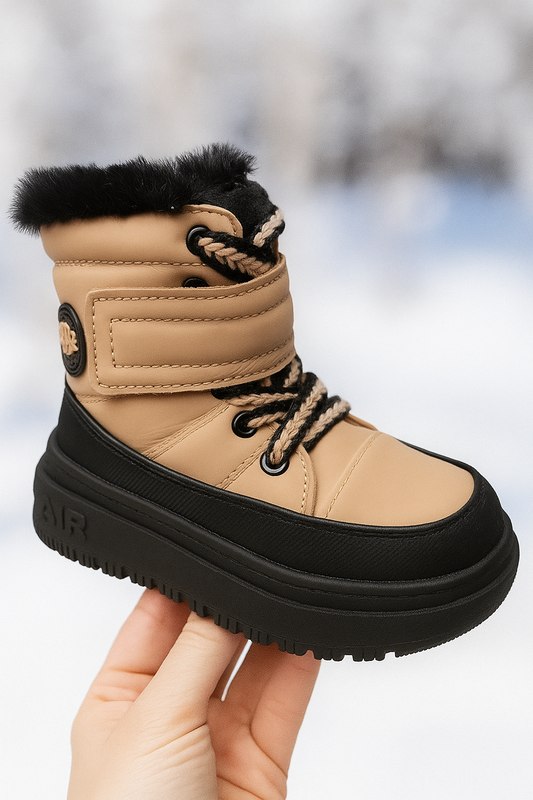 Черевики Ботінки Clibee бежеві на чорній підошві зимові для дівчинки Підошва- ПВХ верх - еко шкіра Всередині- змішане хутро, овчина не важкі, м'які на замочку та шнурках гнучкі