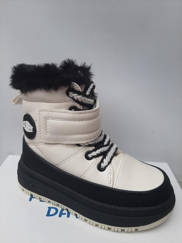 Черевики Ботінки Clibee молочні(світлий беж) на чорній підошві зимові для дівчинки На замочку та шнурках, на липучці Підошва ПВХ не важкі, м'які Верх - еко шкіра Всередині- змішане хутро, овчина Висота платформи- 4 см