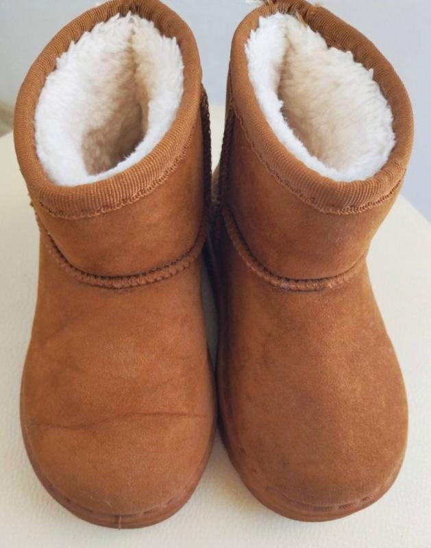 Продам дитячі угги. Штучна замша, утеплені штучним хутром. Антиковзаюча гнучка підошва. В дуже хорошому стані. Розмір 27, довжина устілки 17 см. По всім питанням звертайтесь в приват.