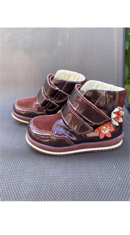 Стан идеален, без сарапин, натуральная лакированная кожа + натуральный замш, с супинатором, липучки держат идеально. На любую полноту ножки. стелька ориентировочно 14 см