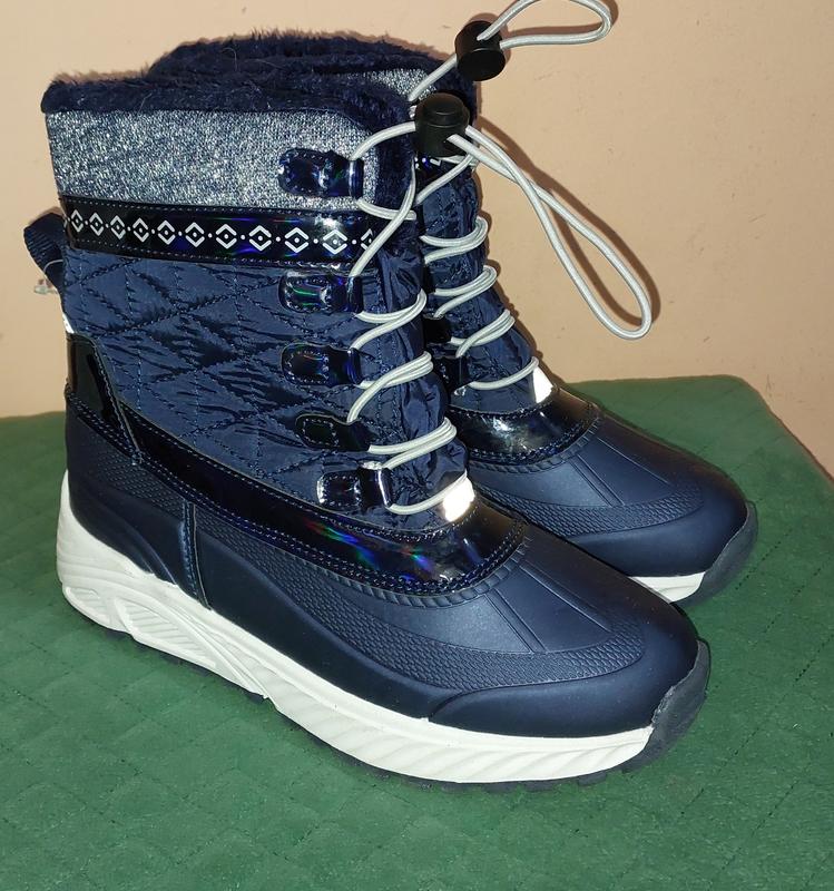 Розміри в наявності: 36р-23.8см Чоботи-черевики (сноубутси) Німецької фірми Pepperts, легкі, теплі з фольгованою устілкою для кращого збереження тепла. Ідеальні на сльоту та мокрий сніг. Відмінна якість. Верх - комбіновані матеріали водо, вітронепроникні, м'який плюшевий утеплювач, додатковий внутрішній шар термо-фліс. Підошва профільна, не ковзає. Є світловідбиваючі елементи. Сезон холодна осінь-зима Дуже практична модель.