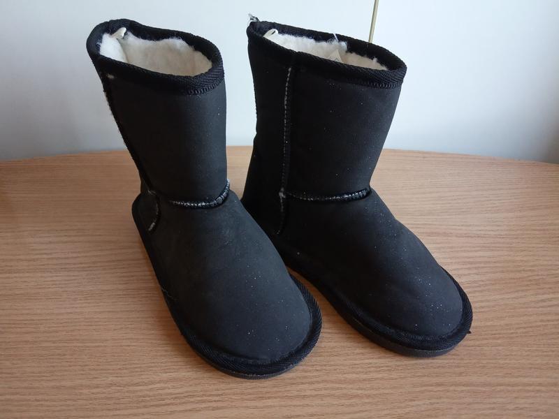 Детские угги, теплые и уютные, плотный текстиль под замшу, Черные мерцающие (с шиммерным напылением, глиттер) Внутри - набивной искусственный мех очень приятный на ощупь В наличии размеры: 29 р. = приблиз. 17 см. по стельке; 19,5 см. по подошве; ширина халявки вверху 13,5 см. (внешний полуобъем), высота халявки 14 см.; 31 р. = приблиз. 19 см. по стельке; 21,5 см. по подошве; ширина халявки вверху 13,5 см. (внешний полуобъем); 32 р. = приблиз. 19,3 см. по стельке; 21,8 см. по подошве; ширина халявки вверху 14 см. (внешний полуобъем); ВАЖНО: 100% предоплата на карту Привата продавца наложки /БЕЗОПАСНОЙ ОПЛАТЫ, обмена, возврата нет отправка Укрпочтой возможна под Вашу ответственность, подробности в разделе "Обо мне"