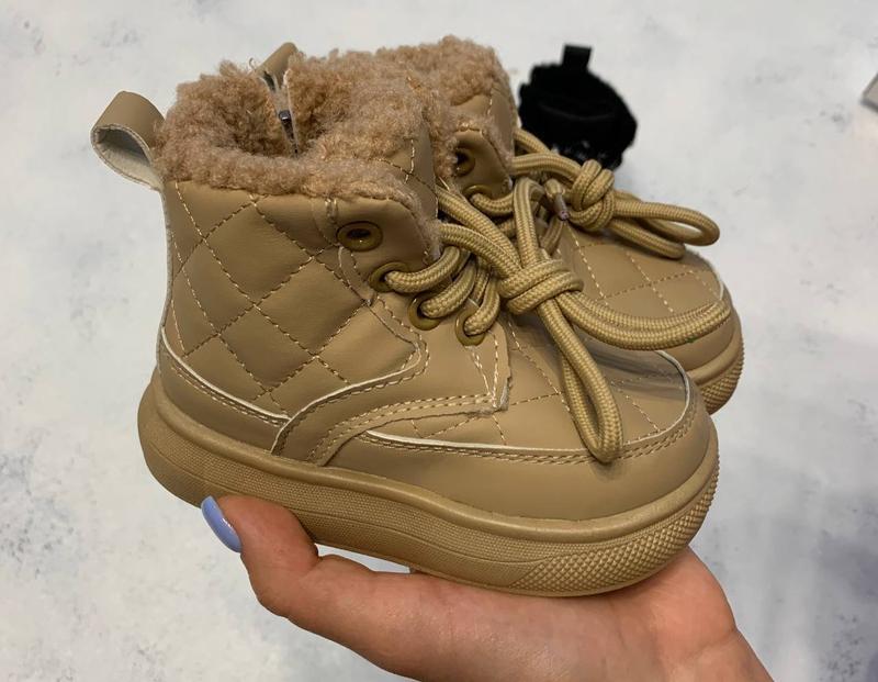 Модель унісекс - підійде для хлопчиків та дівчаток. Зсередини утеплені мехом ( барашик ) , легенькі. Підійдуть на прохолодну осінь та теплу зиму. Розміри в наявності: Маломір. Дивіться заміри устілки. Зроблено замір до загину, загин йде на задній бортик. Запас 1см Розміри в наявності: Р21-13см-5шт Р22-13.5см-5шт Р23-14см-5шт Р24-14.5см-5шт Р25-15см-5шт Р26-15.5см-5шт Р27-16.5см-4шт Р28-17см( замір цього розміру зсередини ) Р29-17.5см-5шт Р30-18.5см-5шт