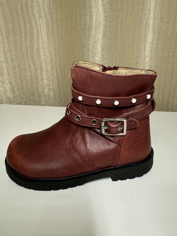 Шкіряні чобітки відомого дитячого бренду, стан чудовий окрім збитих носочків, спеціально не кормила , щоб було видно