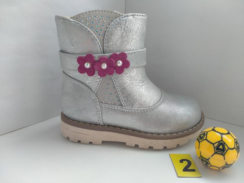 В наявності якісні демісезонні черевики для дівчинки ТМ Том.М № 2 Матеріал верху - якісний кожзам внутрішній матеріал і устілка - фліс Черевики зручні, легкі, красиво виглядають на ніжці. Заміри по устілці від краю до краю: 22р. - 14 см 24р. - 15,5 см