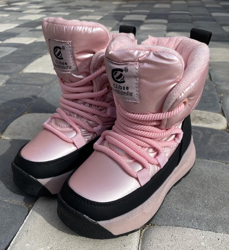 Луноходы от ТМ Clibee Верх экокожа и плащевка Удобная, трендовая подошва Есть шнуровка и молния Утепленные натуральным мехом 27-18 см 28-18,5 см 29-19 см 30-19,8 см 31-20,4 см 32-21 см стелька