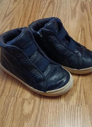 Дуже зручні м'які черевики для дівчинки. Штучна шкіра, але матеріал дуже м'який і комфортний. Спереду дві широкі гумки гарантують чудову посадку та фіксацію на ніжці. Блискавки робочі. Підошва ціла без затертостей. З мінусів — кілька мікротріщин на мисках на матеріалі, що не впливають на носибельність і непомітні під час носіння. Устілка 13,5