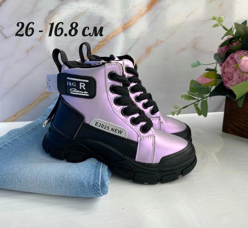 Стильные деми ботинки от Т.М JG Снаружи эко-кожа Стельочка кожаная, есть супинатор Утеплені м’якеньким плюшем Носочек прорезиненный Боковая застежка! вал 26 - 16.8 см