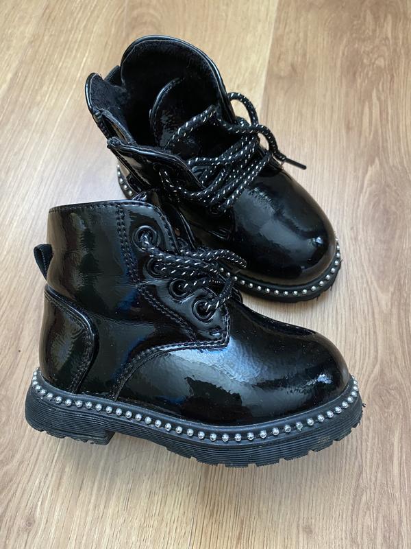 Дитячі ботинки 21 розміру , лакові, без дефектів , утеплені на мікрофлісі. Збоку є змійка. Стан нових