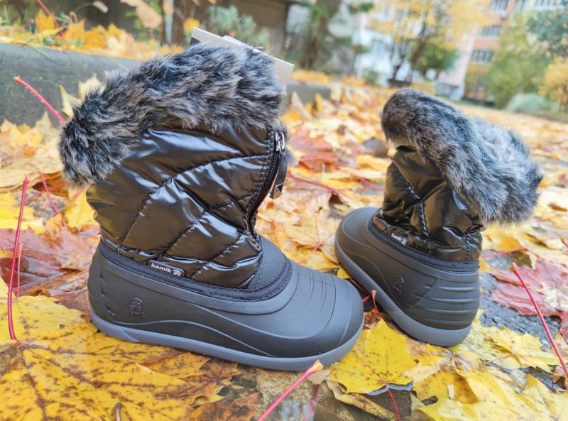 НОВІ дуже теплі, стильні та якісні чобітки сноубутси відомої фірми Kamik розм.8 (25). повна довжина устілки 14,5см МАЛОМІРЯТЬ! ВЗУТТЯ ПРИЇХАЛА В ПАКЕТАХ! БЕЗ КОРОБОК Девіз бренду Kamik (Канада) - максимальний комфорт та надійний захист у найекстремальніших умовах. Відмінна якість виконання, високоякісні матеріали, гарантують міцність, надійність та довговічність взуття торгової марки Kamik. Про цю модель: - Колір: чорний -температурний режим до -32 С -верх-водонепроникний нейлон, за типом вінілу -всередині валенка утеплювач, поверх якого стоїть штучне хутро -застібка - блискавка, що дозволяє легко одягнути та зафіксувати будь-яку ніжку дитини -легкий водонепроникний каркас із синтетичної гуми RubberHe, -підошва Snowpow Kamik із синтетичної гуми. -забезпечують прекрасну підтримку та стійкість гомілкостопу - На ніжці виглядають дуже акуратно! Країна-виробник: Канада