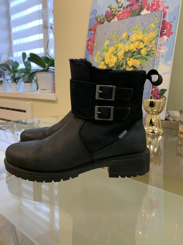 Верх из нубука + мембрана GORE-TEX. Утепленные, подошва гибкая.Без нюансов. Стелька 22,5 см. На узкую ножку, с невысоким подьемом.