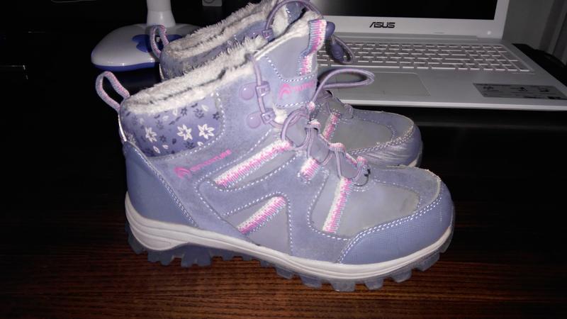 Продам ботинки на девочку. Длина по стельке 21 см. Внутри искусственный мех. Шнуровка на утяжкн, очень удобно для деток. Нескользящая подошва. Есть потёртости с внутренней стороны ботинка в области носка и пятки. В целом состояние очень хорошее. Полностью целые, нет дырок и ничего не отклеилось. Довольно крепкие и удобные. Отходили всю зиму.