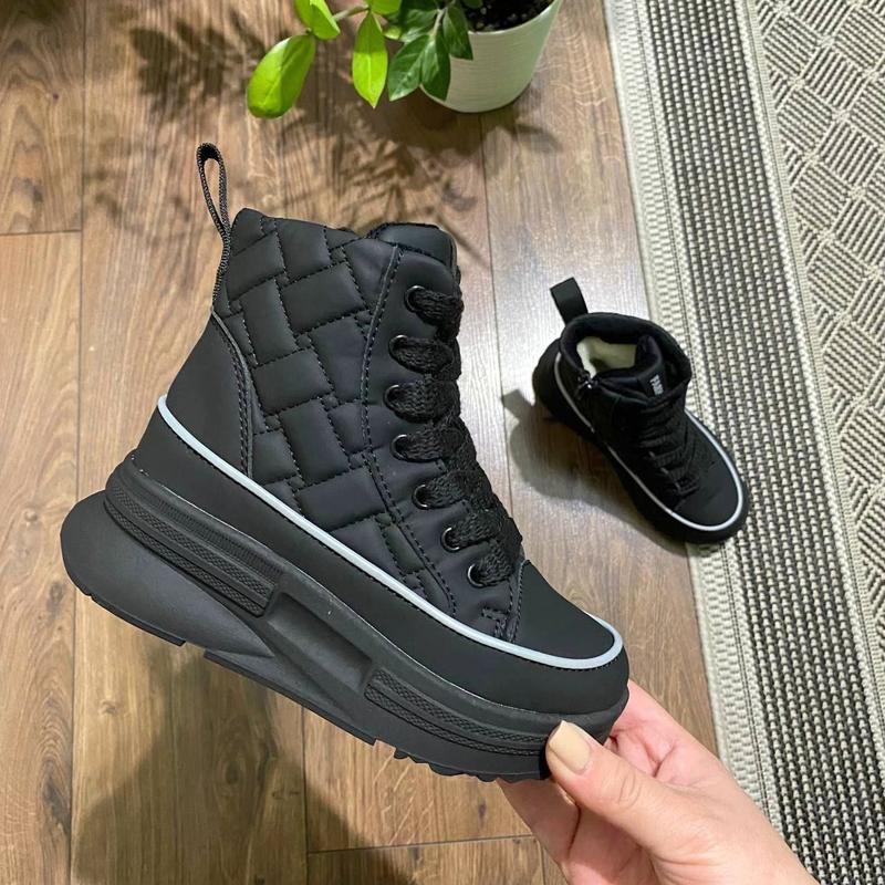 Стильна Зимова новинка для дівчаток Якість бомбезна. Верх якісна екошкіра. Всередині густе тепле хутро ( натуральна овчина 60%). Фіксація на шнурівку. Збоку є замочок. Дуже легесенькі та зручні. Маломірять 32р-19,8см 33р-20,3см 34р-20,8см 34р-20,8см 35р-21,6см 35р-21,6см 36р-22,3см 37р-23см Код 37