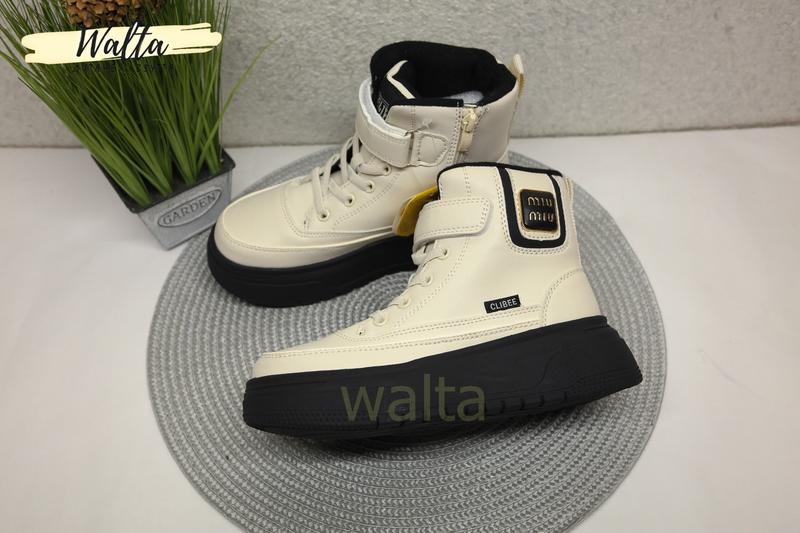розмірна сітка: замір по устілці, що виймається 34 - устілка 22см 35 - устілка 22,5см Стильні черевики демісезонні для дівчинки на липучці +замочок збоку+шнурівка-обманка. Модель нового сезону. Легенькі, зручні, акуратні на стопі. Усередині утеплення збоку флісове. Устілка шкіряна колір: верх світлий беж (молочний), підошва чорна матеріал верху: еко-шкіра мяка підошва: ТПР пакування: пакетик виробника, коробка магазину Пересилаємо укр поштою, новою поштою за домовленістю.