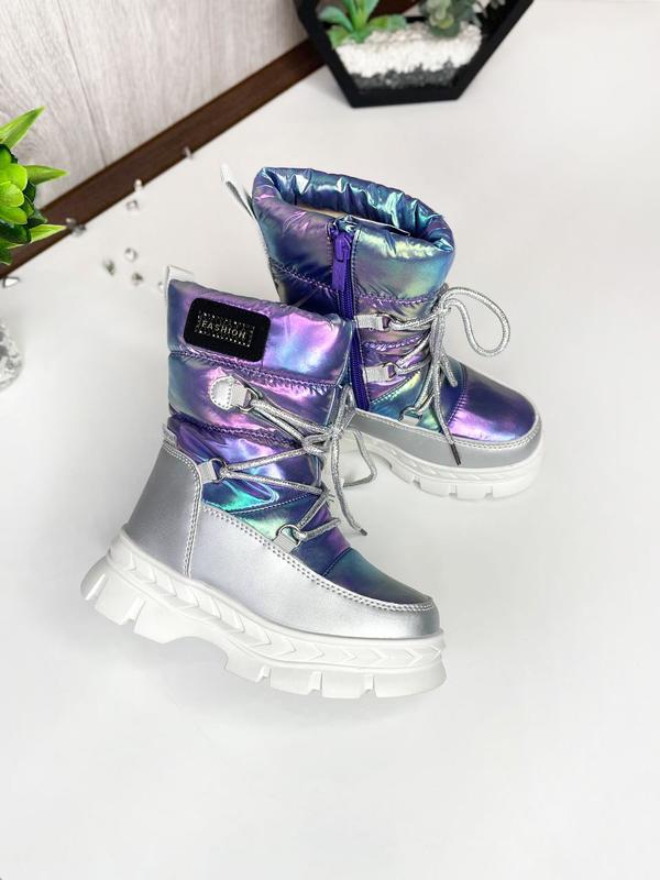 Шикарні дутики від Tom.m. Неймовірно гарно переливаються. Спереду на шнурівці, у стилі луноходів. Усередині утеплені овчиною (60% натур.). Збоку блискавка, є захист від протікання вологи. Легенькі. Стильно виглядають на ніжці. 1100грн 28р. - 18,3см (2шт.) 29р. - 18,9см Вимірювання зроблено всередині по устілці особисто мною, похибка 1-2мм допустима. Устілки можуть не відповідати.