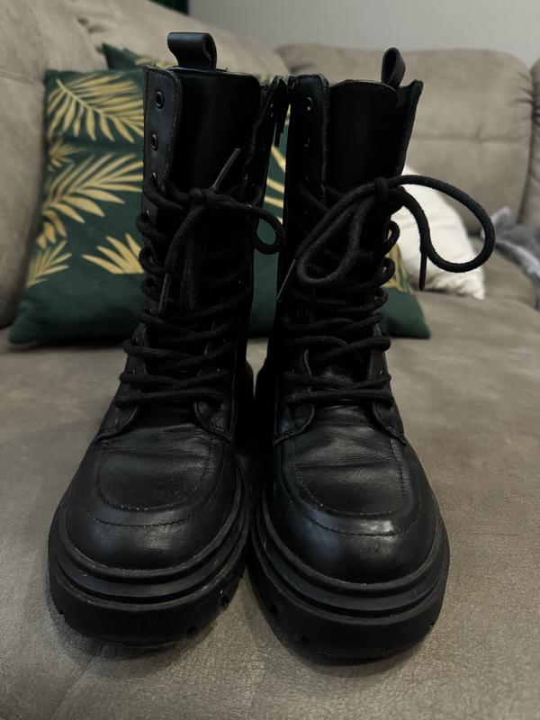 Стильні високі чобітки демосезоні, можна дати зимову устілку і підійдуть на зиму, одіті були один раз, переросли розмір 32р по у стільці 20см Шкіра!